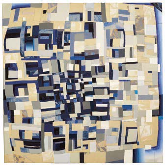 Navigating dichotomies fuels other types of her work, too. The line where quilting ends and painting begins is one more puzzle to ponder, as is the difference between a painting (or, her version of a painting) and a quilt (a distinct form of art which she also makes).