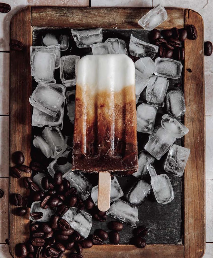 Add sweetener to your coffee — start with a tablespoon and work your way up to a sweetness level of your liking. Note that once frozen, it will taste less sweet so consider adding a little extra sugar. Sweeten the yogurt in the same manner and stir in vanilla extract. To achieve a layered look, add about 1 1/2 tablespoons of yogurt to the base of your ice mold and freeze for 30 minutes. Add more yogurt to each mold until they’re a little more than half full, then slowly pour in the coffee. Inserting sticks will give it a nice stir but for more visual drama, do a figure 8 with your stick in each mold before affixing them properly. Freeze for about 3 hours before serving. (Notes: Using whole milk or plant milk instead of yogurt will result in a less pronounced layered effect but will also taste delicious.)
