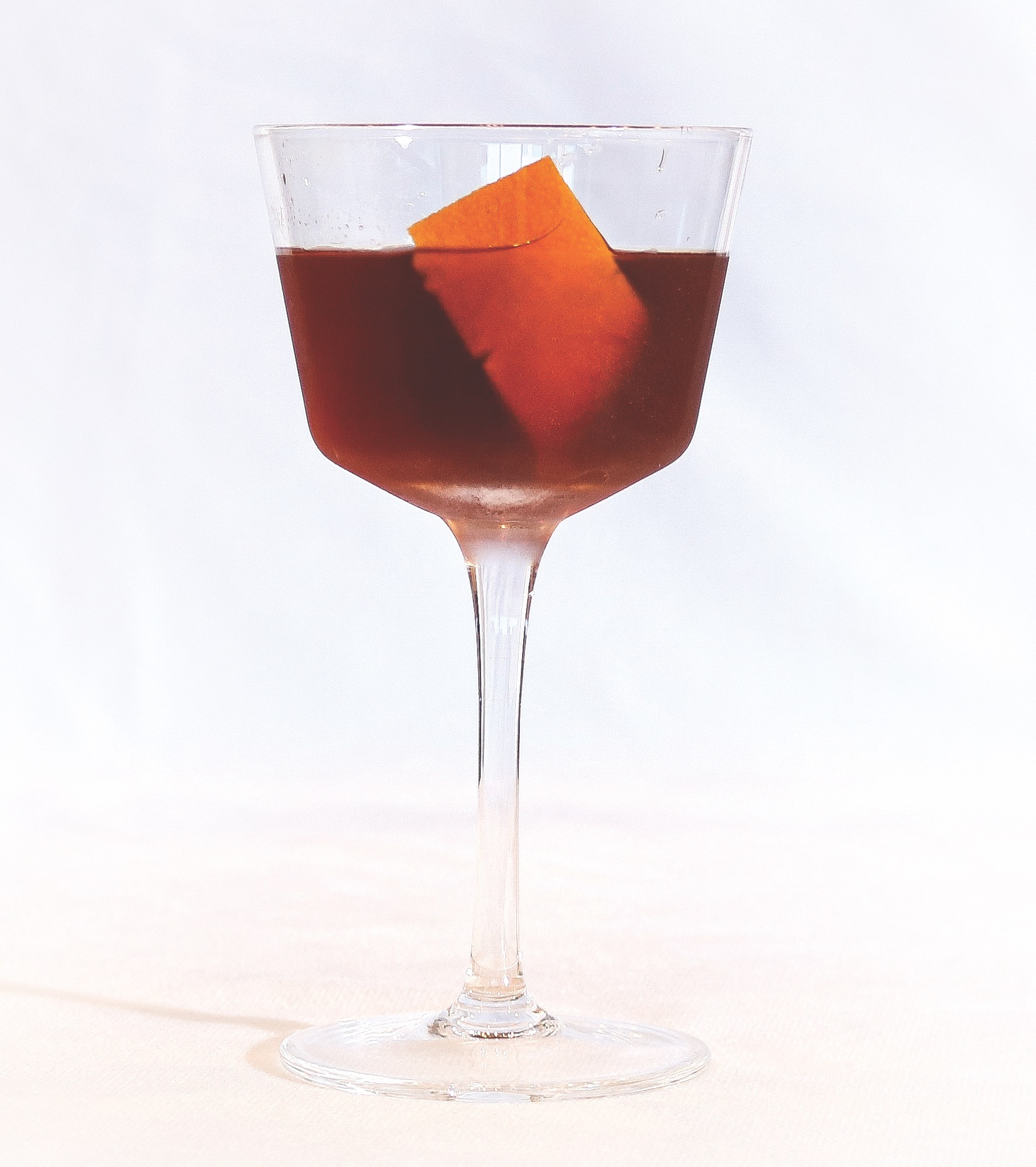 Combine all ingredients in chilled mixing vessel, add ice and stir until proper chilling and dilution has occurred. Strain into a chilled cocktail glass. Express oils from orange peel over cocktail — keep as a garnish or discard.