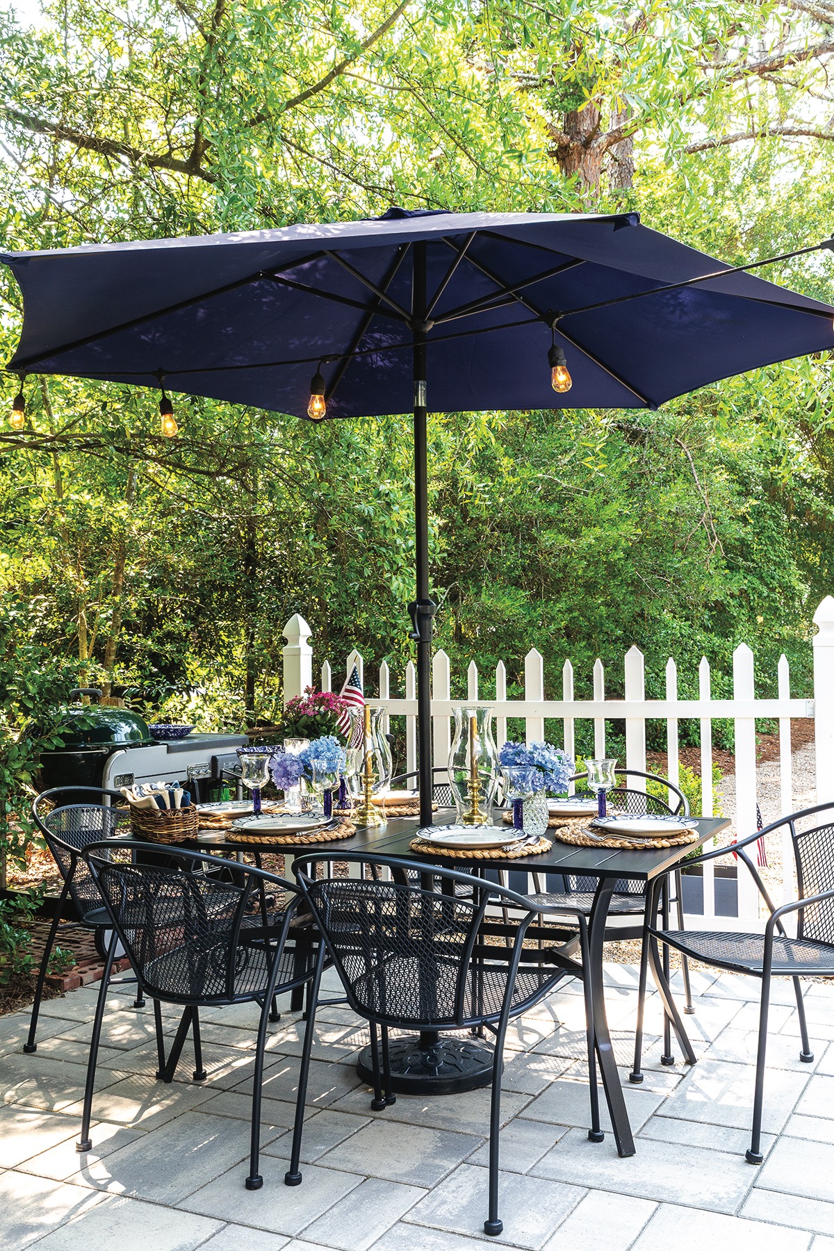 The sorceress performing this magic is Tess Gillespie, who also turned a patio into a garden with seating for a dozen guests — or her children and grandchildren. Bear in mind, the house has no dining room, just a drop-leaf table to pull out when required, and a sweet little bench in the kitchen, where two, maybe three, can add chairs for brunch.
