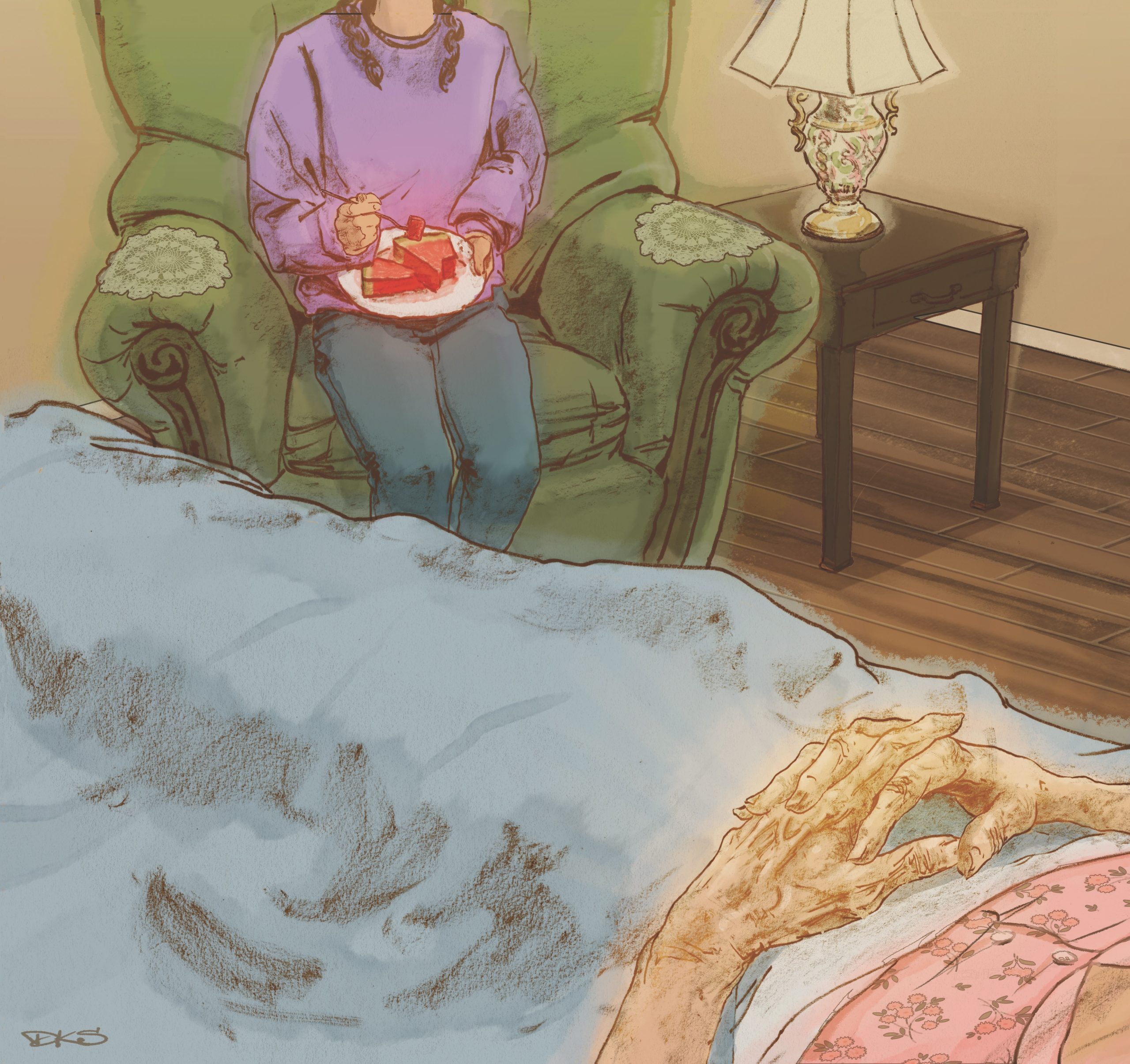 I wish I could remember more about that visit. I only remember going into her bedroom and eating some watermelon in front of her, and it seemed to make her happy.