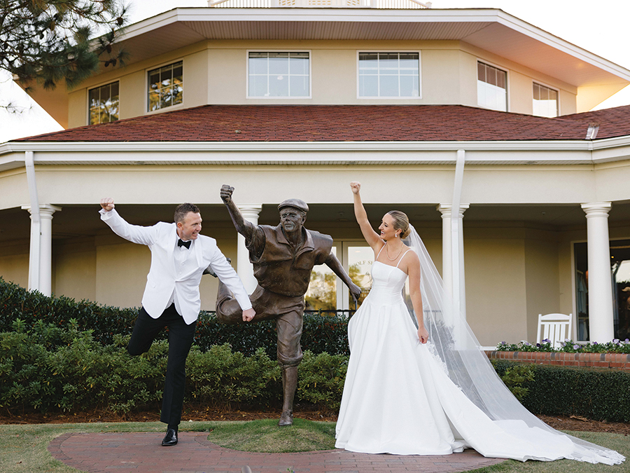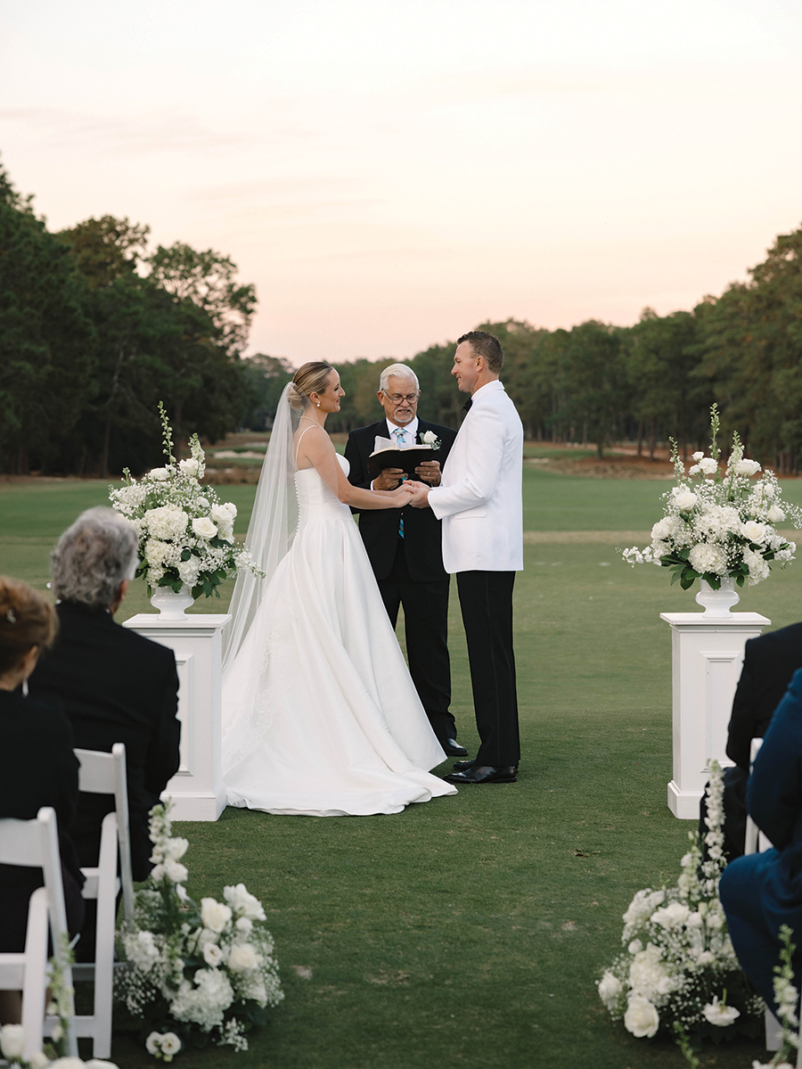 When Willi Martin was a kid, he visited Pinehurst to watch the U.S. Open. Decades later, on Nov. 9, 2024, Willi married his bride, Kelly Moss, on the first tee box of Pinehurst Resort’s legendary No. 2 golf course. “We wanted the natural beauty of the course to be the backdrop to our ceremony,” Kelly says.