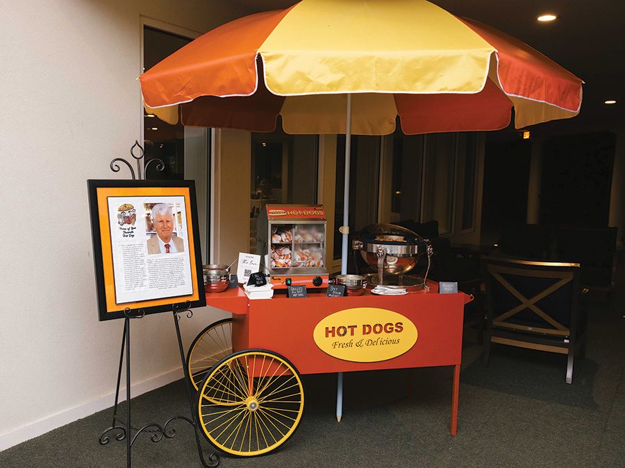 Next came the reception in the Outlook Ballroom. The resort cooked up a spread of North Carolina favorites, including a whole hog of pulled pork barbecue. For a late-night snack, guests enjoyed hot dogs and french fries in honor of Willi’s late grandfather who owned a Wiener Works in Fayetteville. Willi’s parents now run the restaurant.