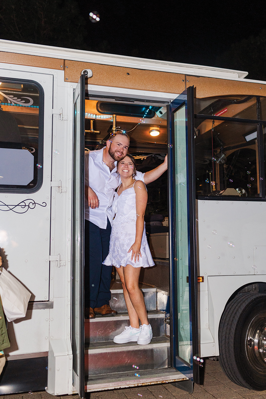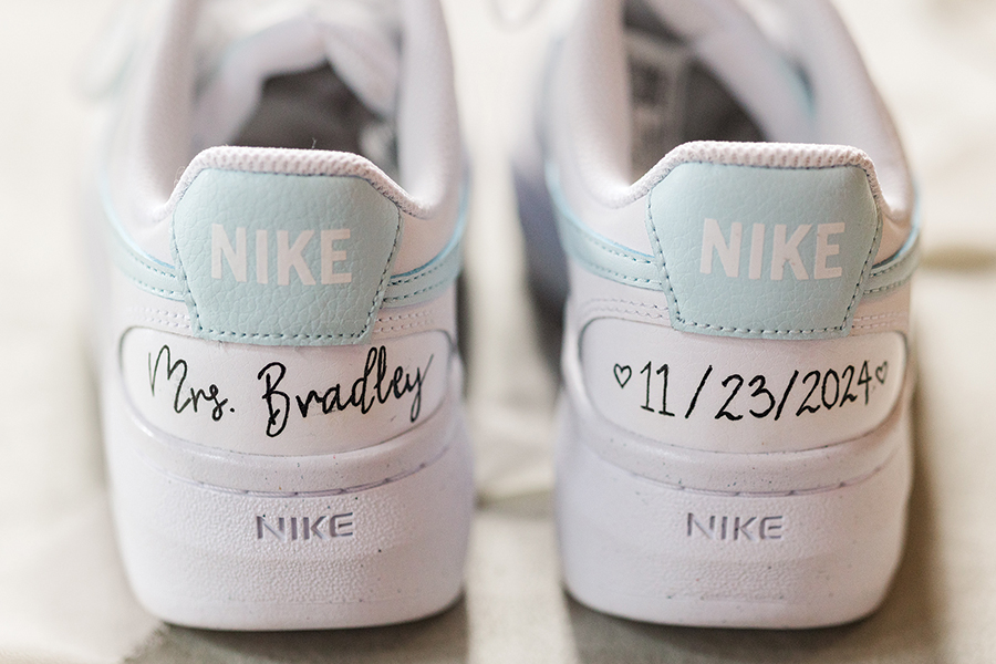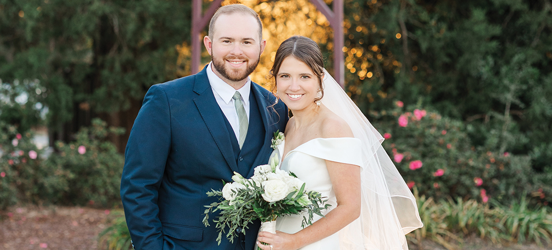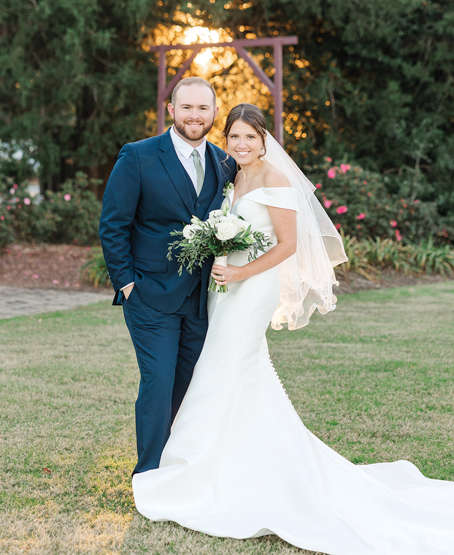 One year after their engagement, the couple exchanged vows on Nov. 23, 2024, in Pinehurst’s Fair Barn. After saying, “I do,” Miranda changed into a reception dress altered from her mom’s wedding dress. Miranda’s grandmother turned leftover fabric into the tablecloth for the Bradleys’ sweetheart table. “I look back on my wedding day with so much joy and admiration,” Miranda says.